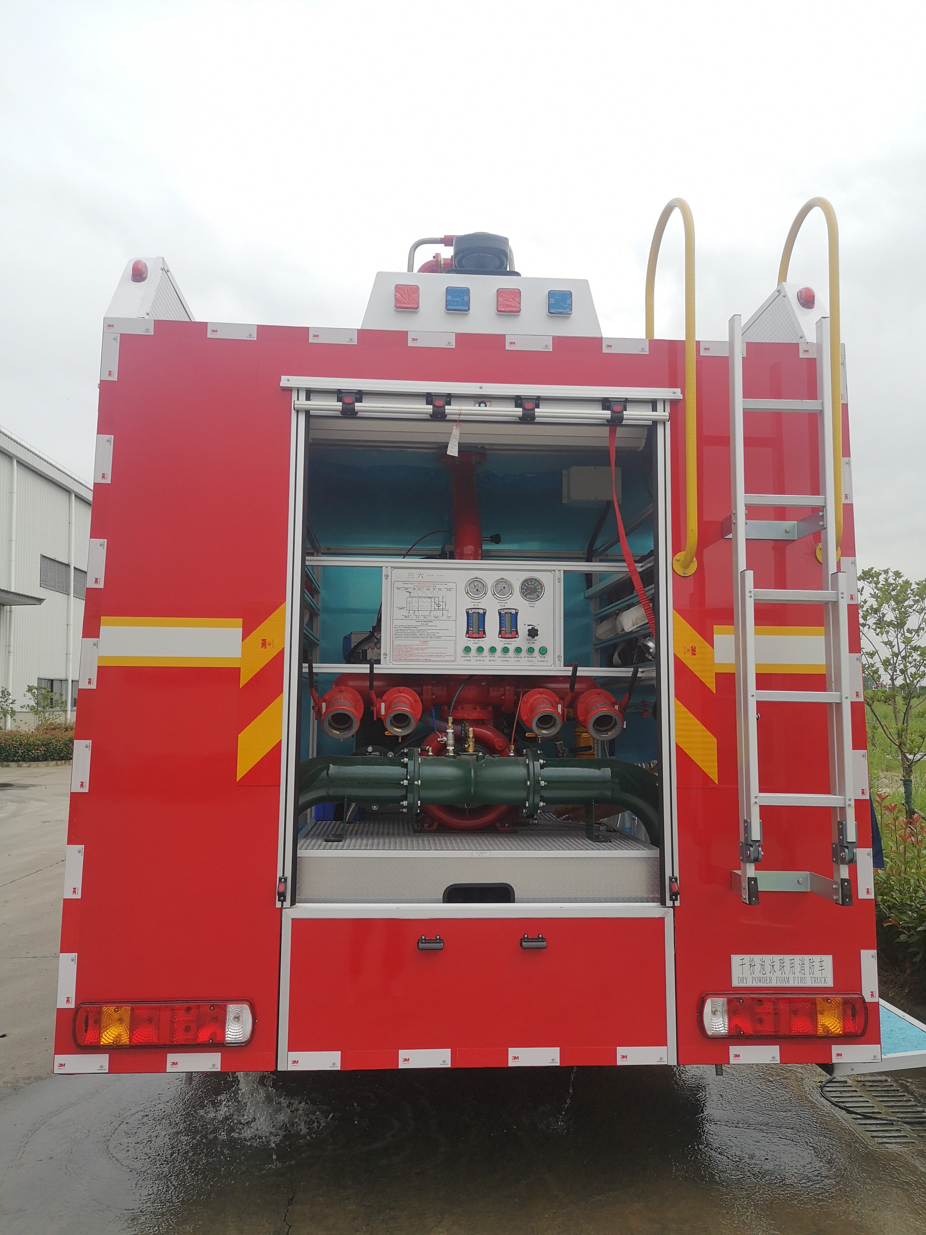Оборудование и средства пожаротушения на борту представляют собой комбинацию пенной пожарной машины и сухой порошковой пожарной машины, которые могут распылять различные огнетушащие вещества одновременно или могут использоваться отдельно.Подходит для борьбы с горючим газом.Легковоспламеняющиеся жидкости, органические растворители и электрическое оборудование, а также пожары общего назначения.
